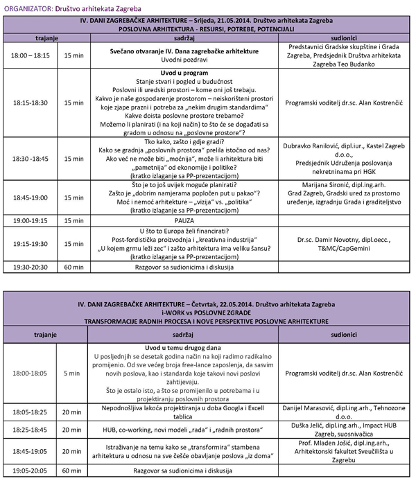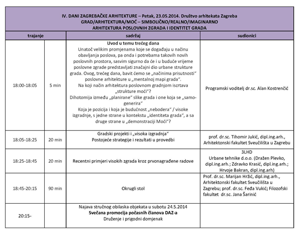 PRELIMINARNI PROGRAM 4. DANA ZAGREBAČKE ARHITEKTURE