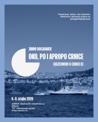 18.00h – 20.00h – Izlaganja ‘’Oko Crnice’’ (izlagači: Urbani separe, Rijeka, Kristina Perkov, Šibenik; Društvo i prostor, Zagreb)